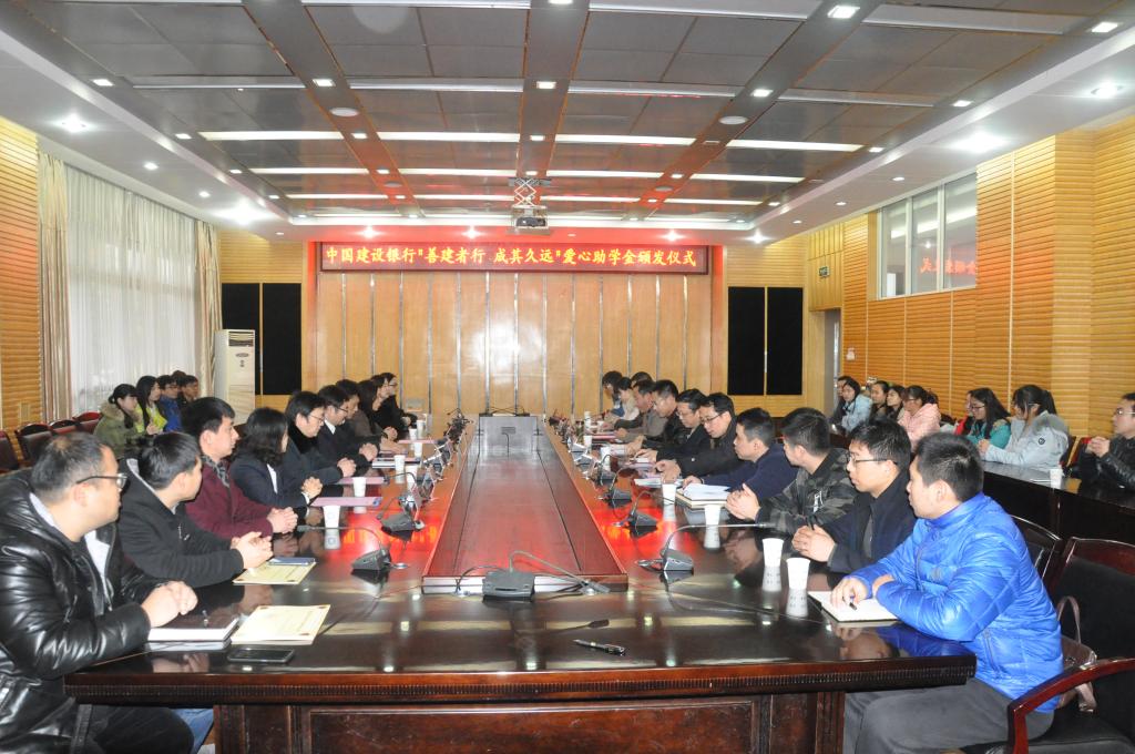 建行淮南市分行相关部门负责人;校财务处处长朱炜,学生处副处长涂有胜、陈楠;各学院资助工作联系人和20名受助学生参加了仪式。