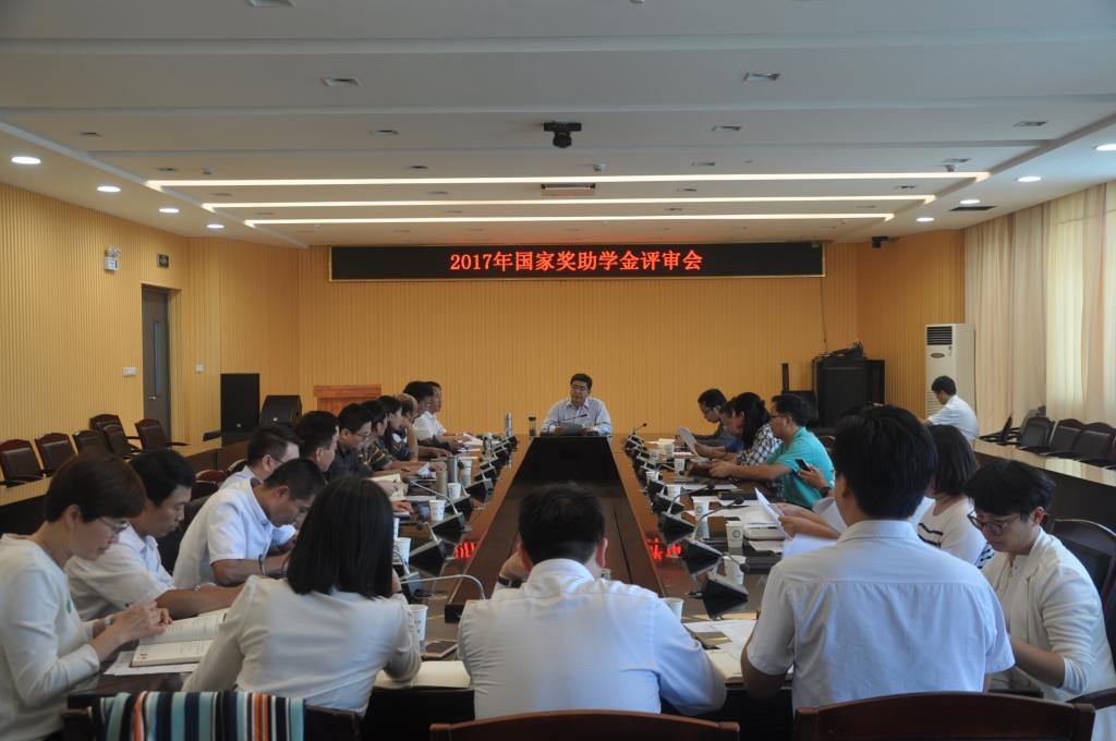 学生处处长田中良就全校国家奖助学金评审推荐工作做了说明,并进一步强调按照学段全覆盖、标准最高档、对象无遗漏、项目可叠加、结果有记录的工作要求,做好建档立卡困难家庭学生的资助工作;学生处副处长涂有胜传达学习了学校评审文件,明确程序、标准、要求,统一思想;各学院分别就本学院2017年国家奖助学金的评选程序、评选名额,被推荐学生的学习成绩、获奖情况、综合表现以及公示情况作了详细汇报,评审委员会逐一进行了审核。