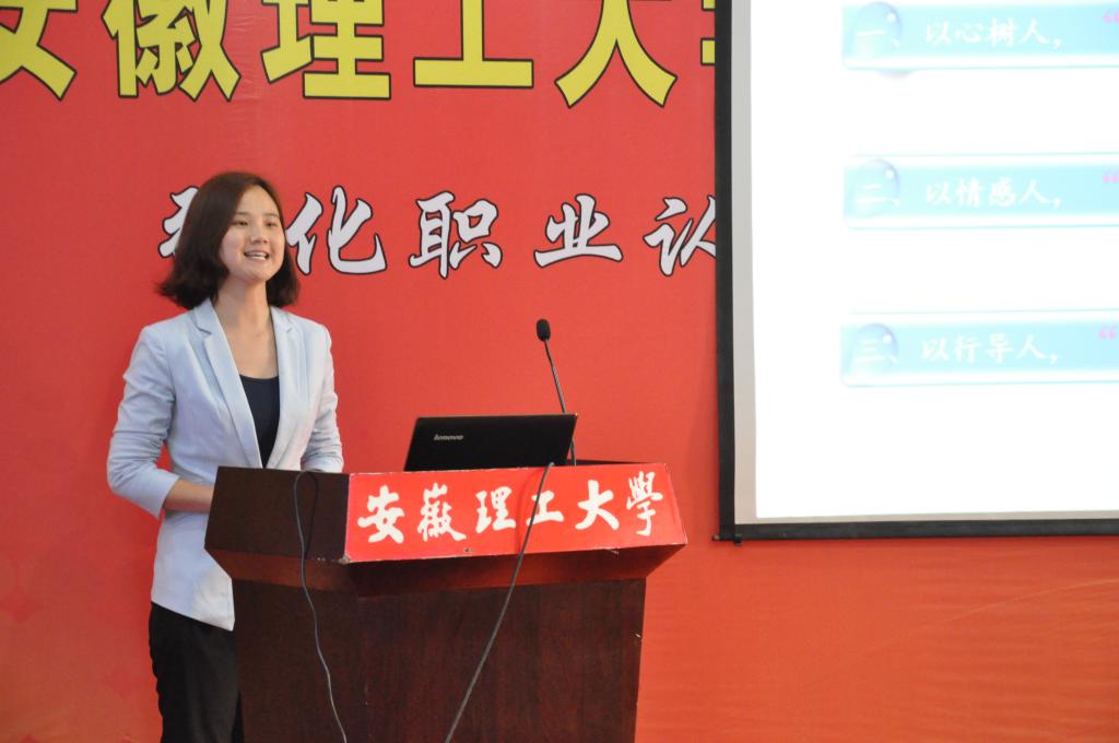 电气学院辅导员丁玲玲老师从“辅导圆”、“扶倒员”、“弗倒员”三个角度诠释了“辅导员”的新含义。在日常工作中她用责任、真情和行动引导每个学生朝着“EMS”奋斗目标—“‘Electricity’学习电的专业,‘Morality’提高道德修养,‘Show’勇于展现自己”努力前行。