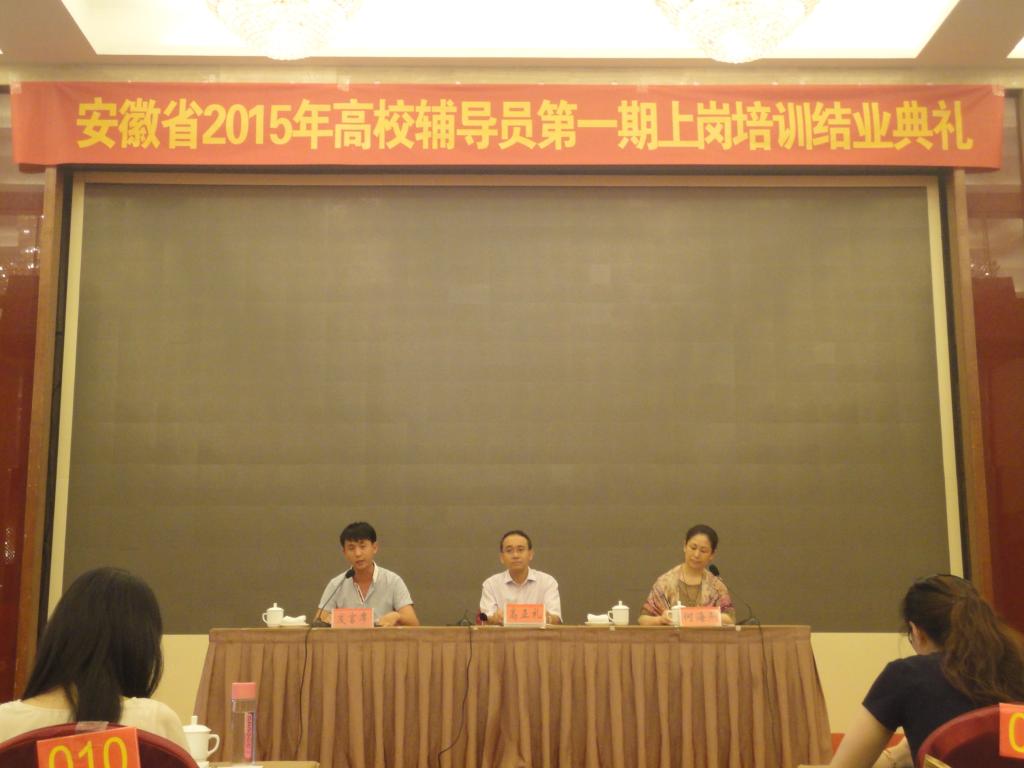 本次培训是由省教育厅、教育部高校辅导员培训和研修基地(安徽师范大学)共同举办,培训师资安排科学,教学内容丰富,教学形式多样,具有很强的针对性和实用性。在师资安排上既有多所高校资深的学生工作专家学者,也有长期工作在教育管理一线的优秀辅导员;教学内容既有理论知识的解读,如《辅导员工作的生涯价值和人生意义》、《班级管理的目标与艺术》等,也有实务技能的经验分享,如“辅导员如何开展谈心谈话”、“学生干部的选拔、培养和使用”等;教学形式既有专题讲座、自由交流,也有分组讨论、拓展训练。通过培训,旨在帮助新任辅导员掌握岗位工作基本知识与技能,切实提高开展大学生思想政治教育、管理、服务的能力和水平,尽快进入角色。