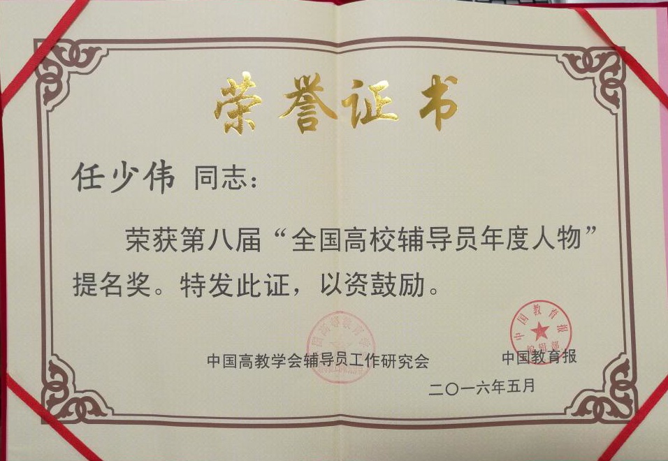 日前,第八届“全国高校辅导员年度人物”评选活动结果揭晓,土木学院辅导员任少伟老师荣获全国高校辅导员年度人物提名奖,5月27日参加了教育部在大连理工大学举办的全国高校辅导员工作现场会,交流了工作经验,为学校赢得了荣誉。