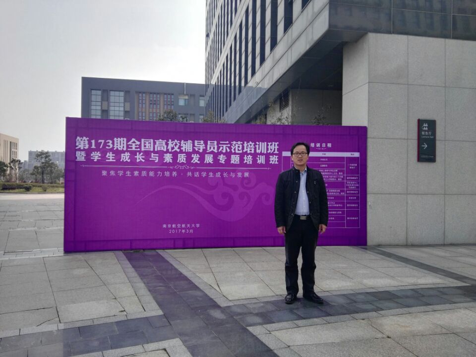 第173期全国高校辅导员示范培训班暨学生成长与素质发展专题培训班于3月20日至23日,在南京航空航天大学将军路校区举行,我校能源与安全学院党委副书记金德参加了培训班学习。
