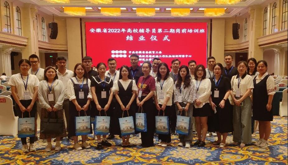 近日,由中共安徽省委教育工委主办,教育部高校思想政治工作队伍培训研修中心(安徽师范大学)承办的安徽省2022年高校辅导员第一期和第二期岗前培训班在芜湖海螺国际会议中心顺利举办。我校28名2022年新聘辅导员与来自全省其他高校辅导员共同参加了此次培训。