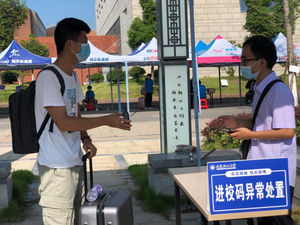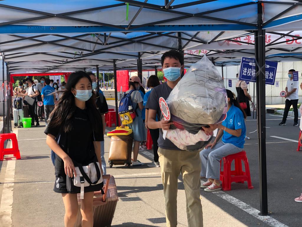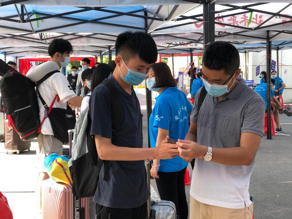 夏木成荫时,喜迎学子归。经历了“最长假期”之后,8月25日,我校迎来了秋季学期的返校学生。随着1万8千余名本科生的平安归来,沉寂已久的校园重新焕发了蓬勃的生机活力。在生机盎然的夏日里,有这样一群人,他们积极投身到学校疫情防控最前沿:从引导查验到发放口罩,从搭建站点到搬运行李,从线上报平安到宿舍走访……烈日炎炎下,120余名党员学工干部,描绘了一幅幅“红色”夏日风景,用自身行动诠释了学工干部先锋本色。