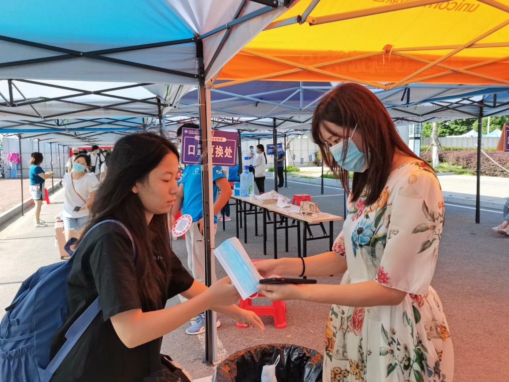 为学生发放口罩(摄影:王冰洁 钱元 衡连伟)