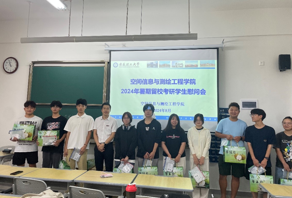 为帮助暑期留校考研学生缓解考研压力,增强备考信心,做好安全教育管理工作。8月5日上午,空间信息与测绘工程学院于明德楼404、406自习室开展2024年暑期留校考研学生慰问活动。学院党委书记范洪喜、副院长王磊、毕业班辅导员和2024年暑期留校考研全体学生参加。慰问活动由毕业班辅导员主持。