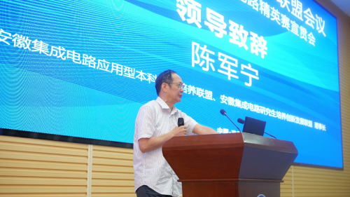 陈军宁在致辞中介绍了本次活动的由来,对参加此次联盟会的高校老师及重点企业表示由衷感谢,强调联盟及安徽省第四届集成电路精英赛的重要意义,并对安徽省第四届集成电路EDA精英赛的赛事情况进行说明。