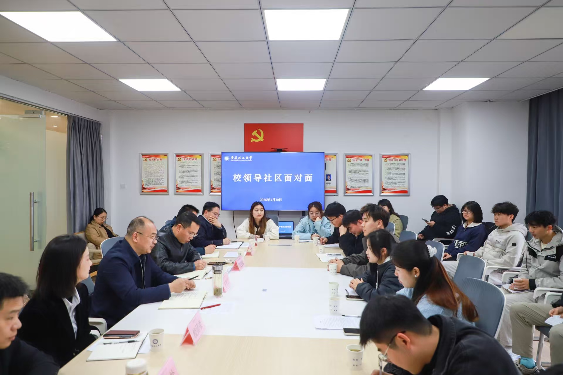 3月30日下午,学校在义苑“一站式”学生社区党团活动室召开“校领导社区面对面”学生座谈会,校党委常委、副校长王先江主持会议并讲话。